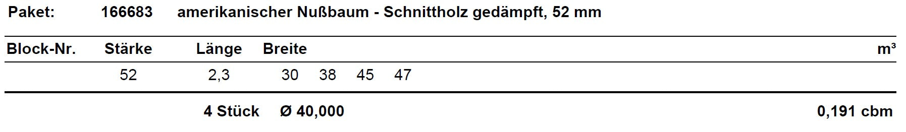 Amerikanischer Walnuss Schnittholz unbesäumt, 52mm, Qualität A/B, #166683
