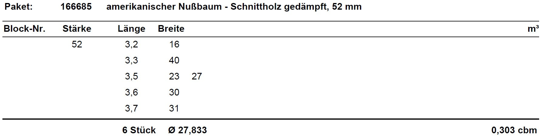 Amerikanischer Walnuss Schnittholz unbesäumt, 52mm, Qualität A/B, #166685