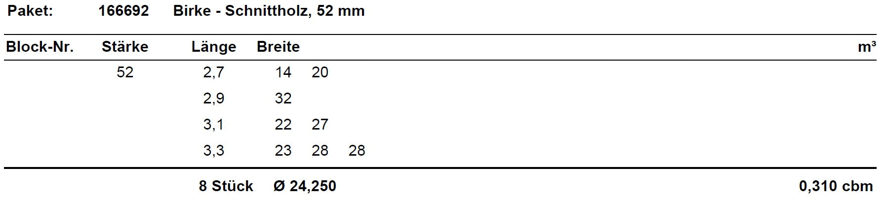 Birke Schnittholz unbesäumt, 52mm #166692