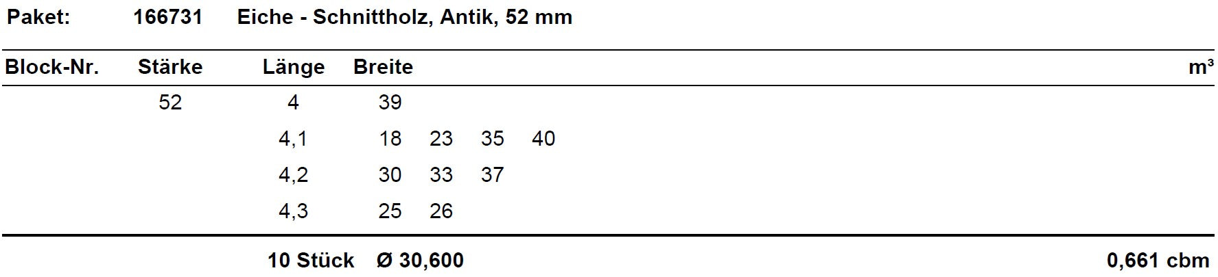 Eiche Schnittholz unbesäumt, 52mm, Antik #166731