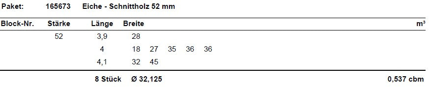 Eiche Schnittholz unbesäumt, 52mm, Qualität B, #165673