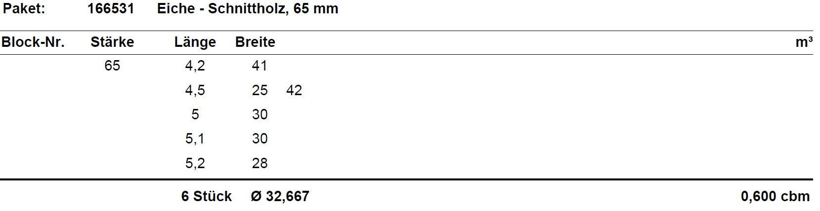 Eiche Schnittholz unbesäumt, 65mm, Qualität A/B, #166531