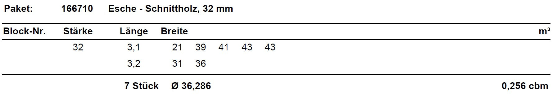 Esche Schnittholz unbesäumt, 32mm, Blockware #166710