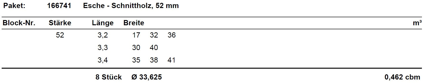 Esche Schnittholz unbesäumt, 52mm, Qualität A/B/C, #166741