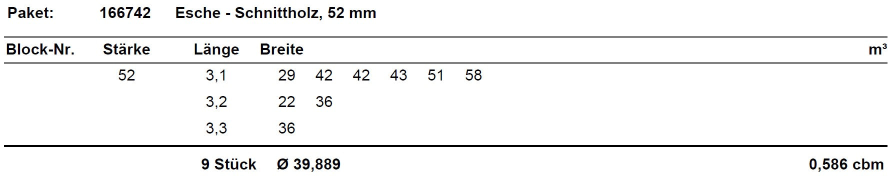 Esche Schnittholz unbesäumt, 52mm, Qualität A/B/C, #166742