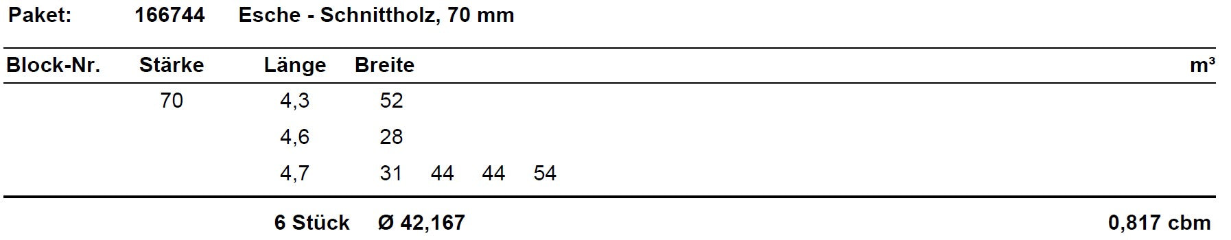 Esche Schnittholz unbesäumt, 70mm, Qualität A/B, #166744