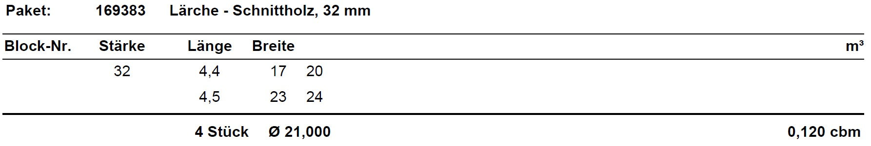 Lärche Schnittholz unbesäumt, 32mm, Qualität A/B, #169383