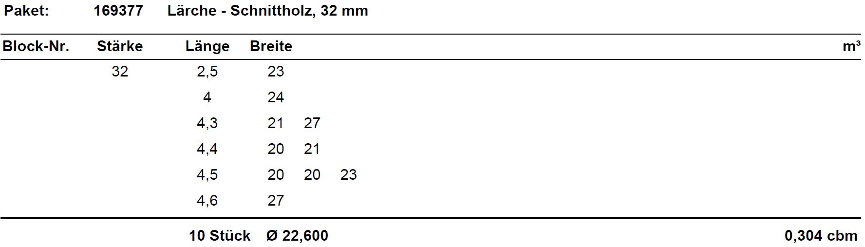 Lärche Schnittholz unbesäumt, 32mm, Qualität A/B, #169377