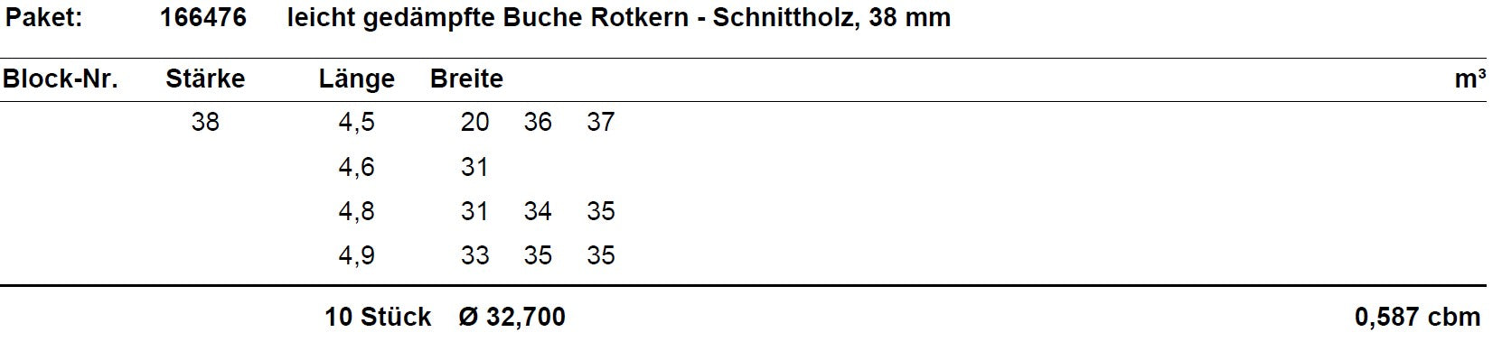 leicht gedämpfte Buche Schnittholz unbesäumt, 38mm, Rotkern, #166476