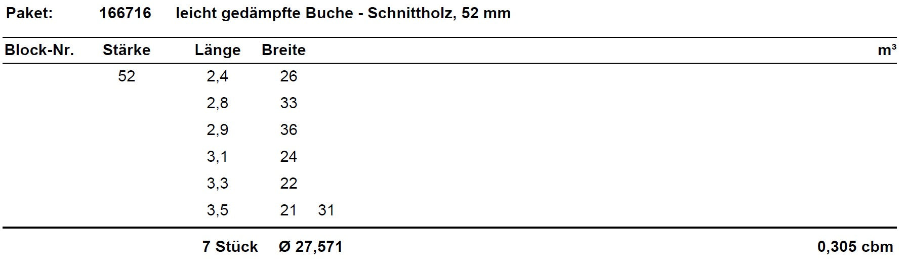 leicht gedämpfte Buche Schnittholz unbesäumt, 52mm, Qualität A/B, #166716