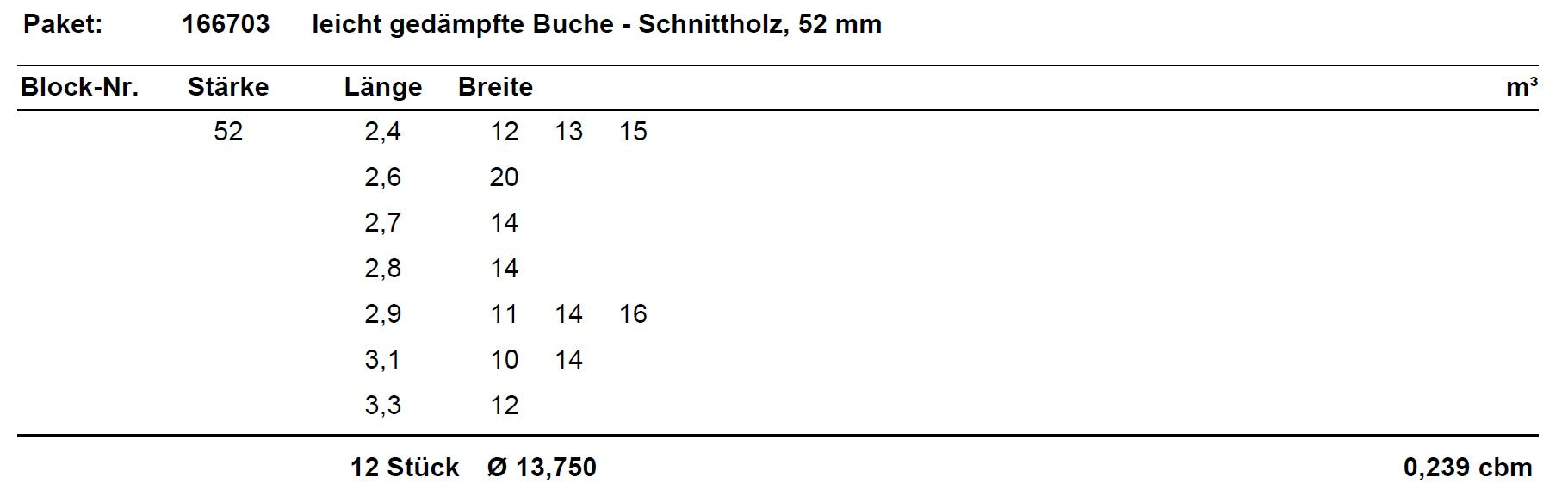 leicht gedämpfte Buche Schnittholz unbesäumt, 52mm, Qualität A/A, #166703
