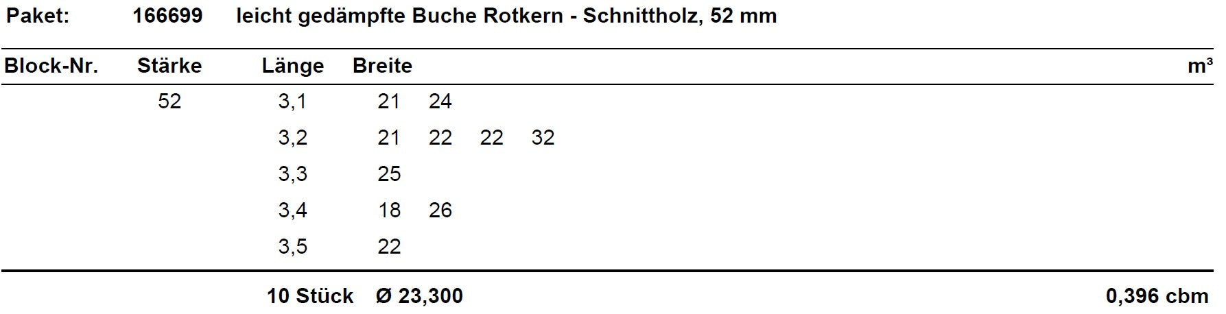 leicht gedämpfte Buche Schnittholz unbesäumt, 52mm, Rotkern, #166699
