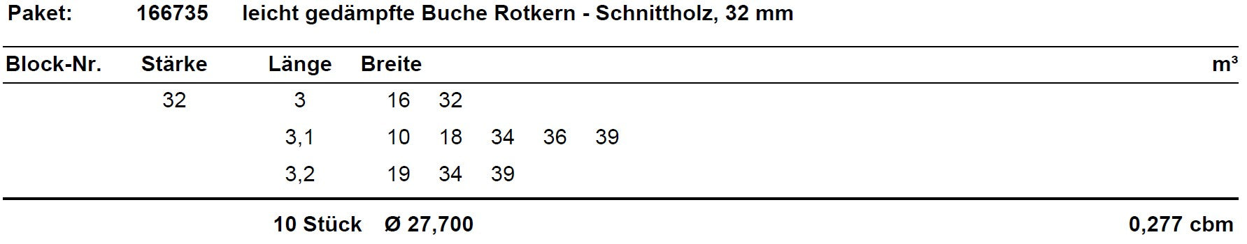 leicht gedämpfte Buche Schnittholz unbesäumt, 32mm, Rotkern #166735