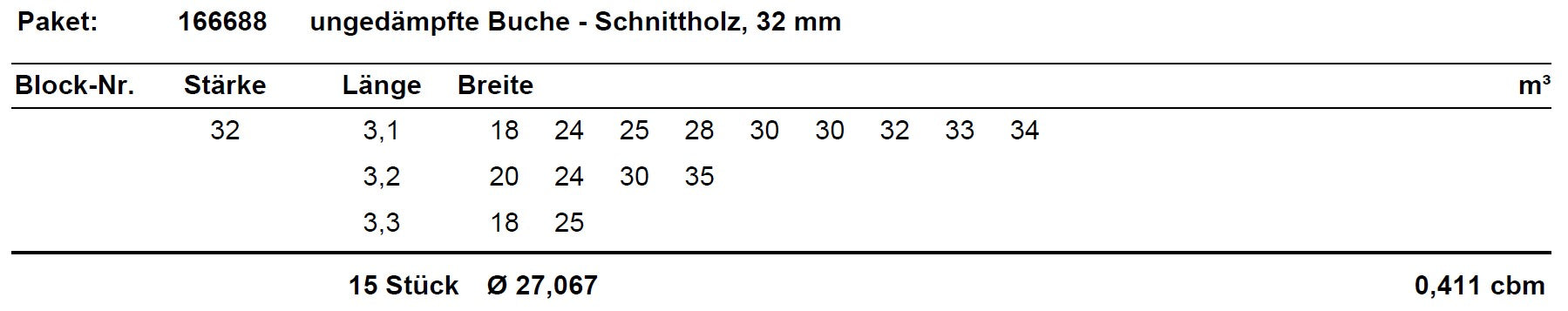 ungedämpfte Buche Schnittholz unbesäumt, 32mm, Qualität A/B, #166688